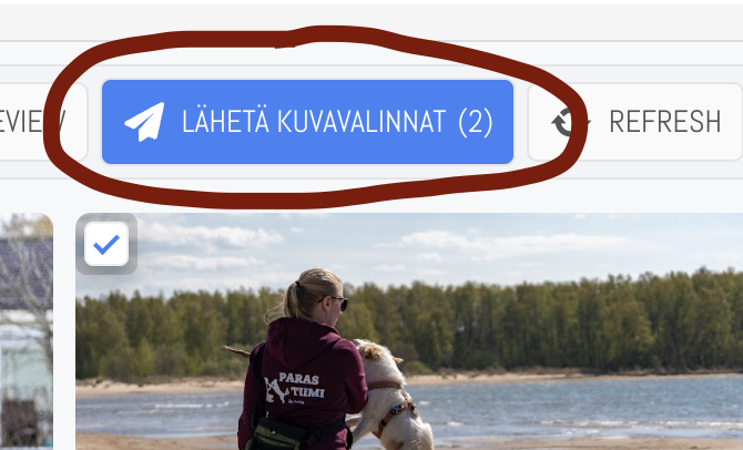 Valittuasi haluamasi kuvat valitse ”Lähetä kuvavalinnat”. Muistathan valintojen lisäksi täyttää tilauslomakkeen.