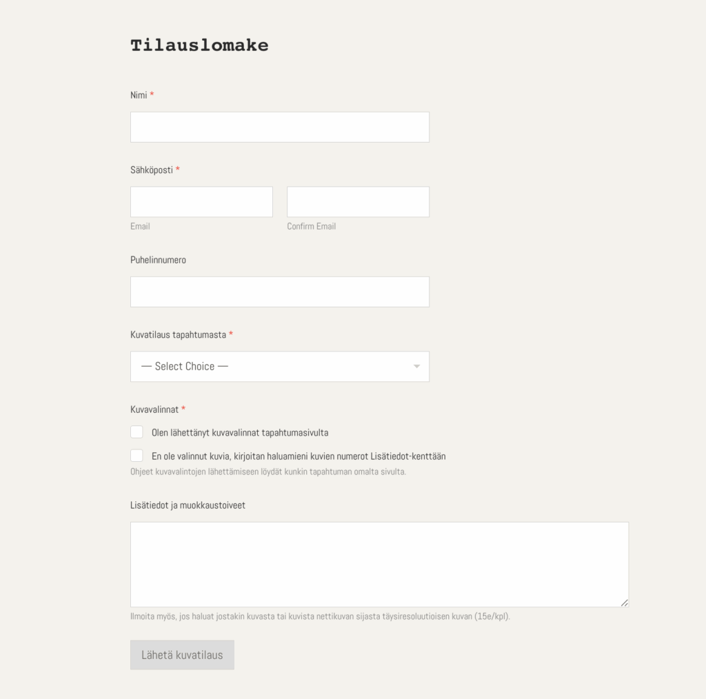 4. Mene tilauslomakkeelle ja täytä tilaustiedot lähettääksesi kuvatilauksesi.